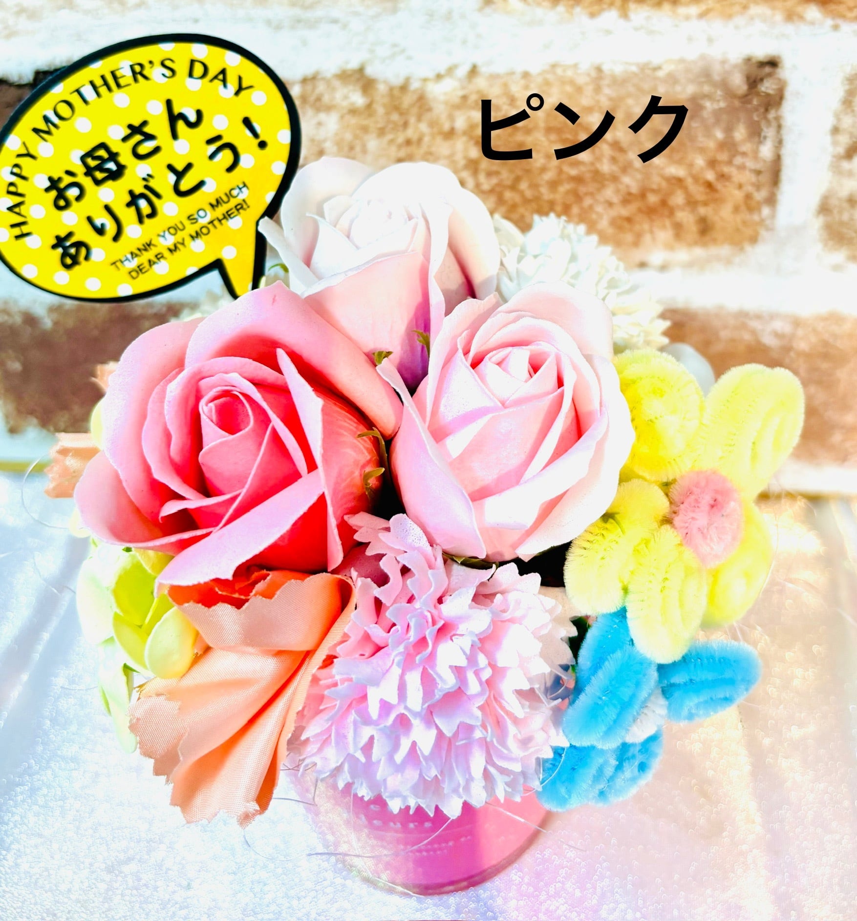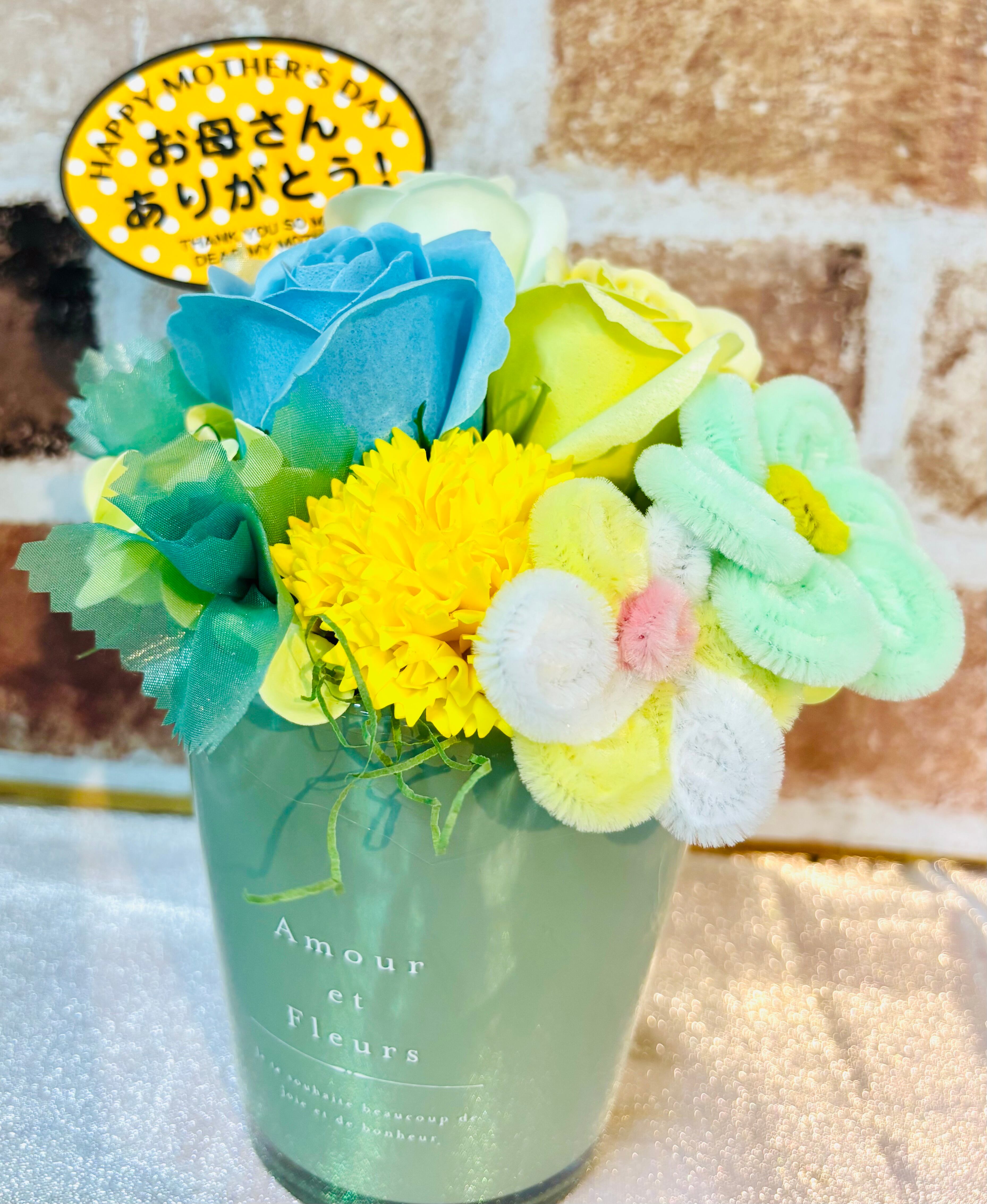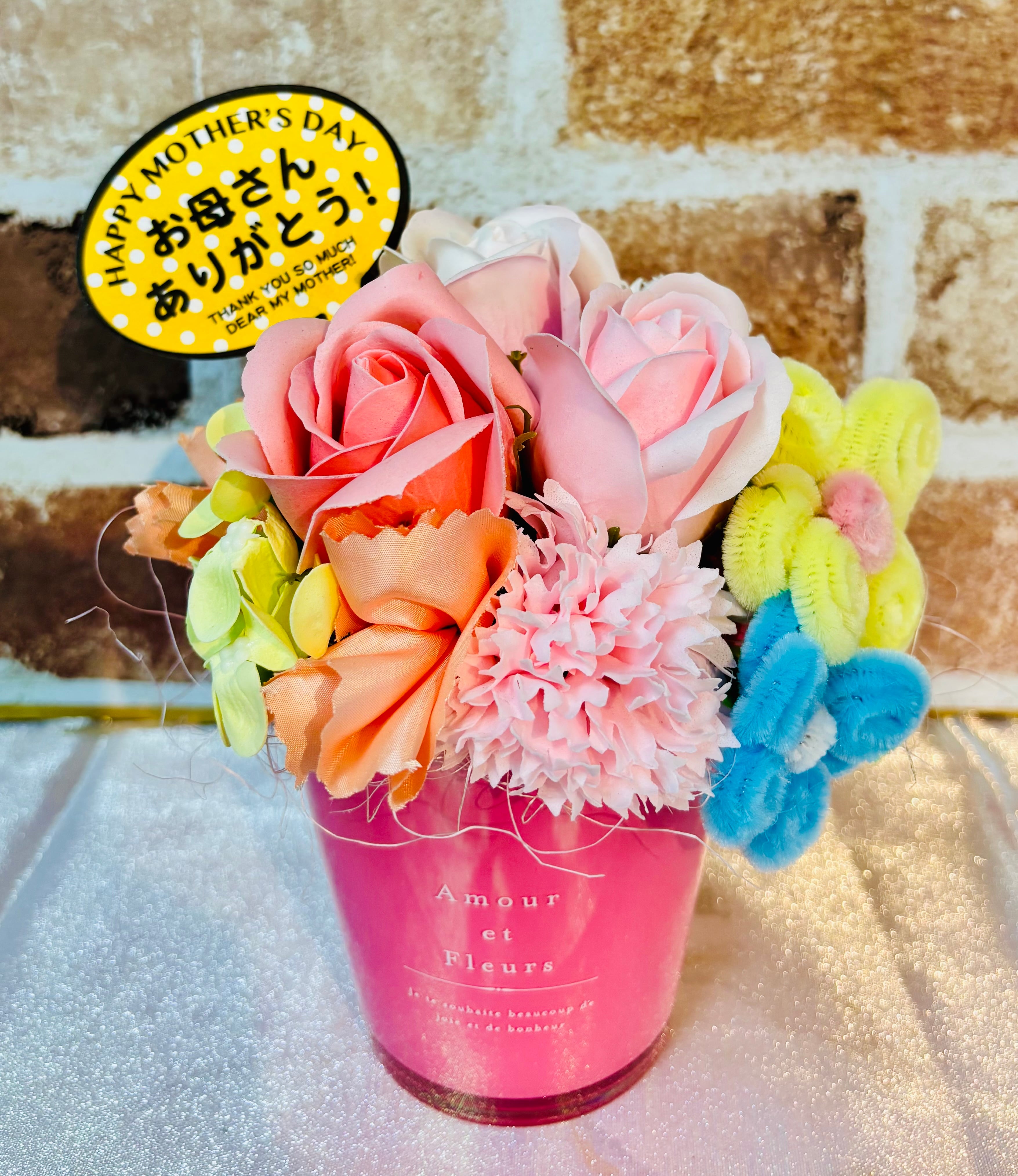 優雅なデザインと心温まる香りのハーモニー!ソープ&モールフラワーアレンジメントは、装飾としての美しさと香りによる癒しを兼ね備えた特別なアイテムです。お部屋を華やかに彩るだけでなく、大切な方への贈り物にもぴったりの素敵な一品です!