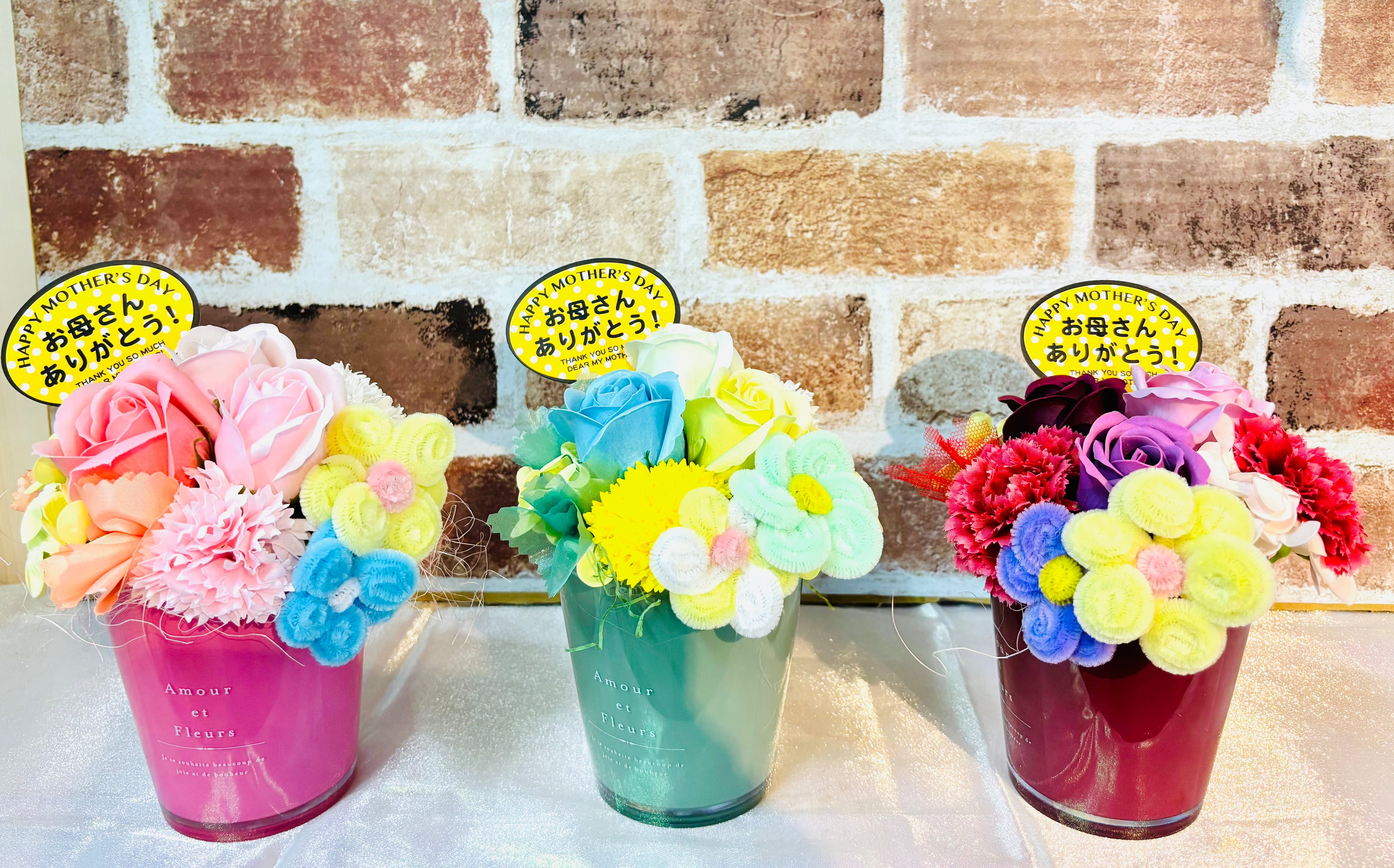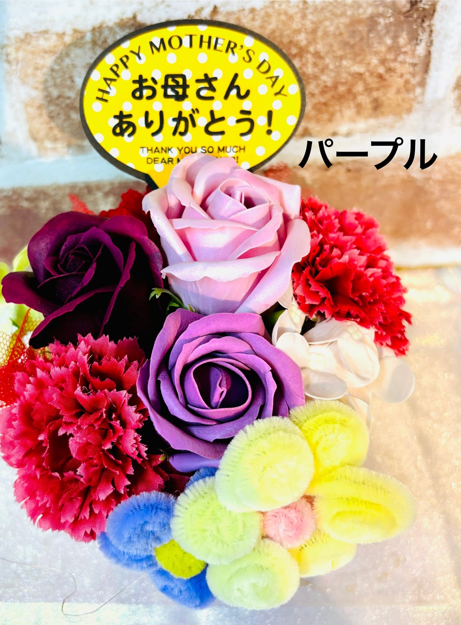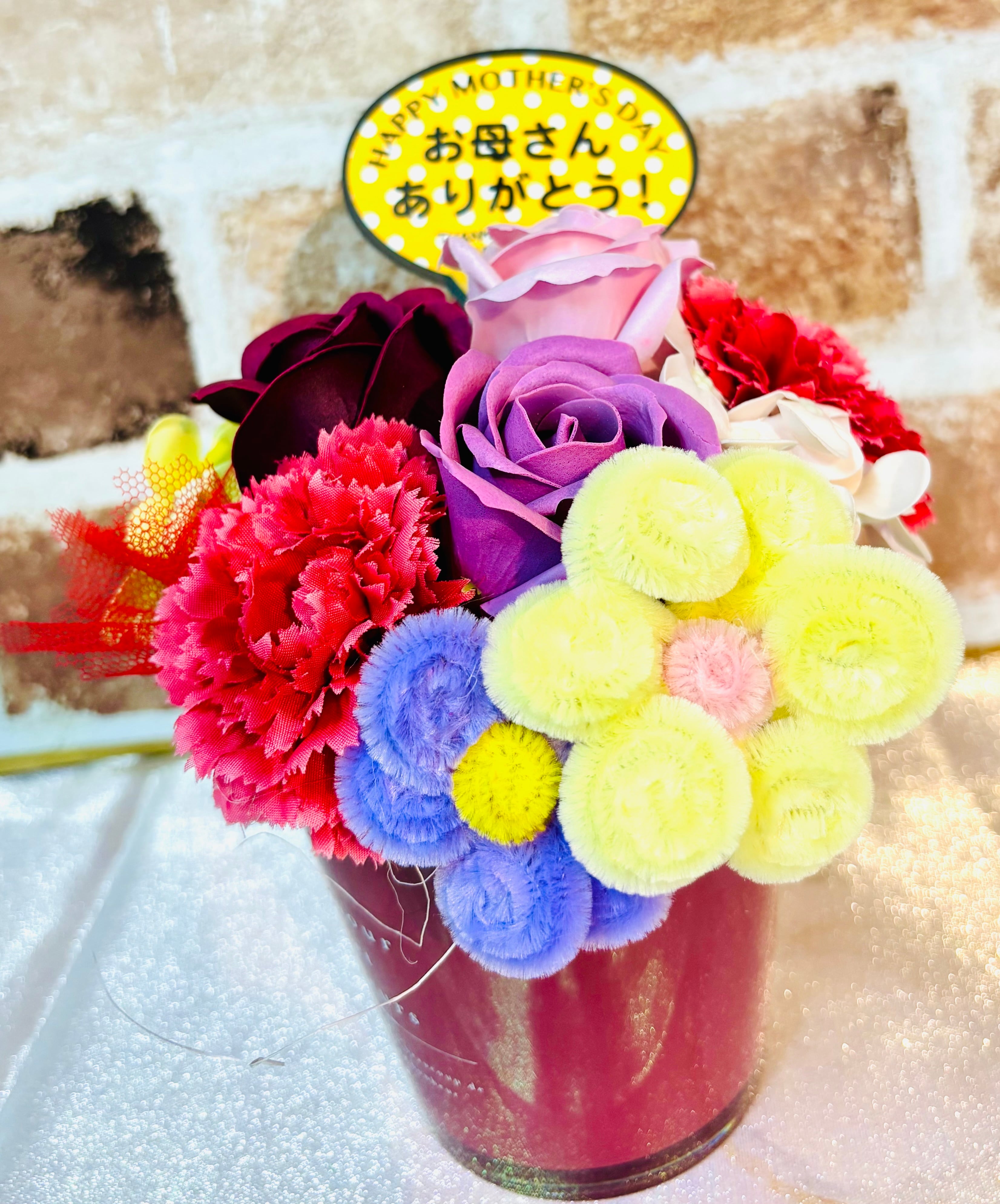 優雅なデザインと心温まる香りのハーモニー!ソープ&モールフラワーアレンジメントは、装飾としての美しさと香りによる癒しを兼ね備えた特別なアイテムです。お部屋を華やかに彩るだけでなく、大切な方への贈り物にもぴったりの素敵な一品です!