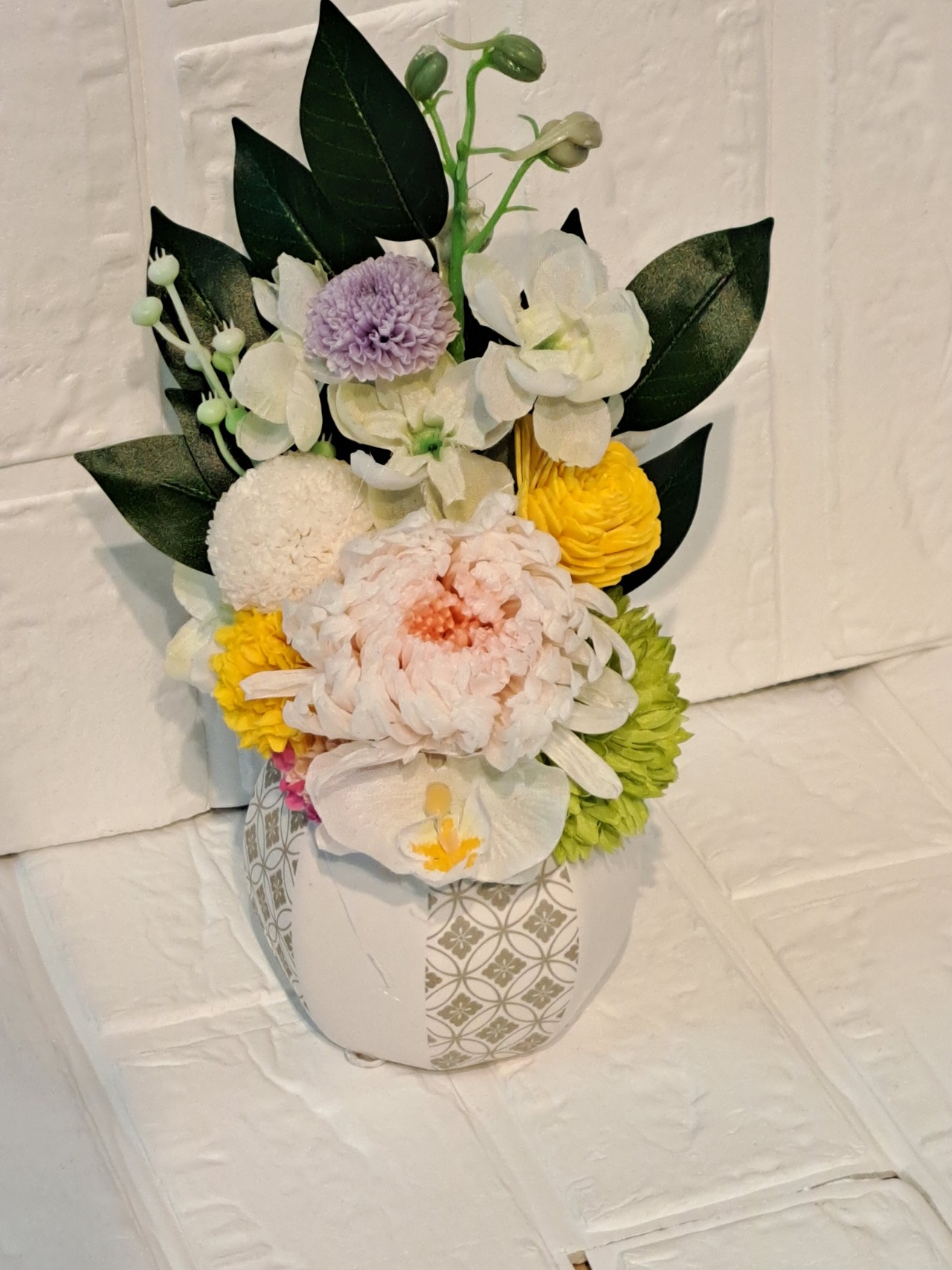 花材:プリザーブドフラワー(大輪菊 小菊 ピンポンマム カーネーション フェイクフラワー ソラフラワー他